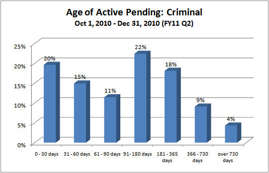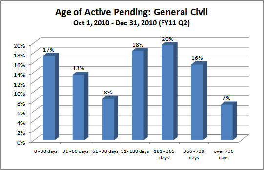 How it is measured: Case pending age is measured from the time of filing to the time of measurement. Only active cases (cases in which the court is able to proceed) are included in this measure.
