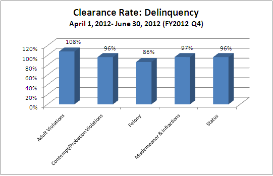 What it is: The clearance rate is the number of disposed cases as a percentage of the number of filed cases in a given time period. In juvenile courts, the clearance rate is the number of adjudicated referrals as a percentage of the number of initiated referrals in a given time period.