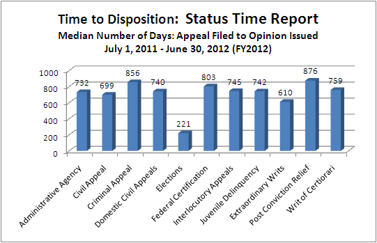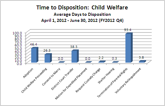 What it is: In January 2013, the Utah Judicial Council adopted time to disposition guidelines suggesting 95% of case dispositions meet the established time goal. Time to Disposition is the courts' assessment of how long it should take to resolve each case type.