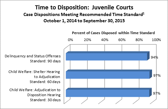 How it is measured: Time to Disposition focuses on resolved cases rather than cases in progress. It is calculated as the percentage of cases disposed within the time standard set for each case type by the Utah Judicial Council. Any days in which a case is inactive because proceedings are stayed or a warrant is active are subtracted from the total number of days.