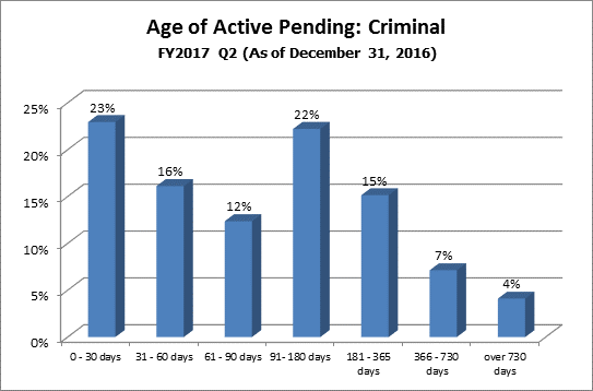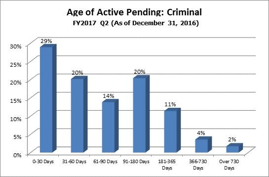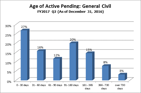 How it is measured: Case pending age is measured from the time of filing to the time of measurement. Only active cases (cases in which the court is able to proceed) are included in this measure.