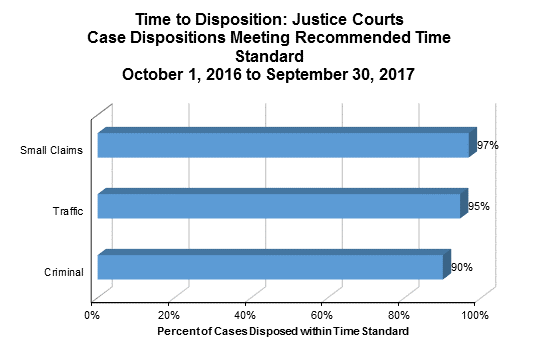 How it is measured: Time to Disposition focuses on resolved cases rather than cases in progress. It is calculated as the percentage of cases disposed within the time standard set for each case type by the Utah Judicial Council. Any days in which a case is inactive because proceedings are stayed or a warrant is active are subtracted from the total number of days.