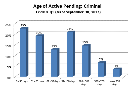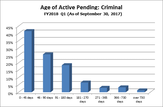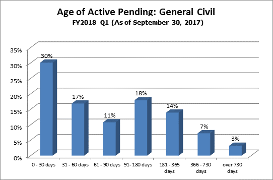 How it is measured: Case pending age is measured from the time of filing to the time of measurement. Only active cases (cases in which the court is able to proceed) are included in this measure.