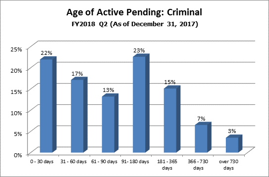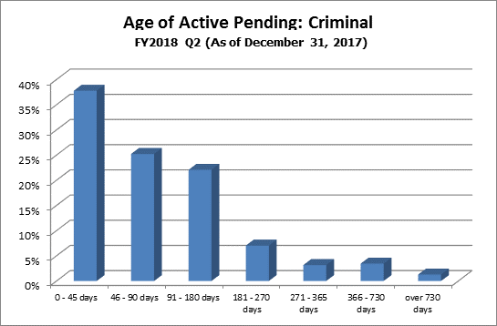 How it is measured: Case pending age is measured from the time of filing to the time of measurement. Only active cases (cases in which the court is able to proceed) are included in this measure.