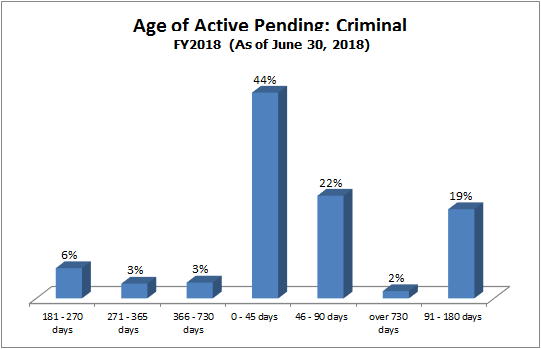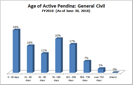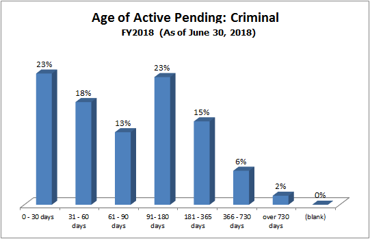 How it is measured: Case pending age is measured from the time of filing to the time of measurement. Only active cases (cases in which the court is able to proceed) are included in this measure.