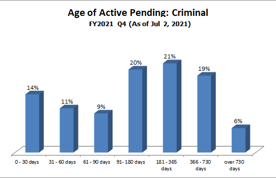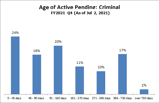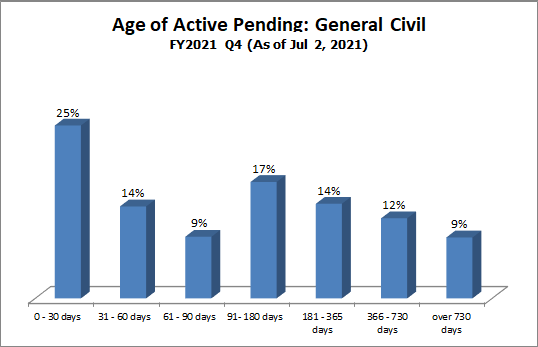 How it is measured: Case pending age is measured from the time of filing to the time of measurement. Only active cases (cases in which the court is able to proceed) are included in this measure.
